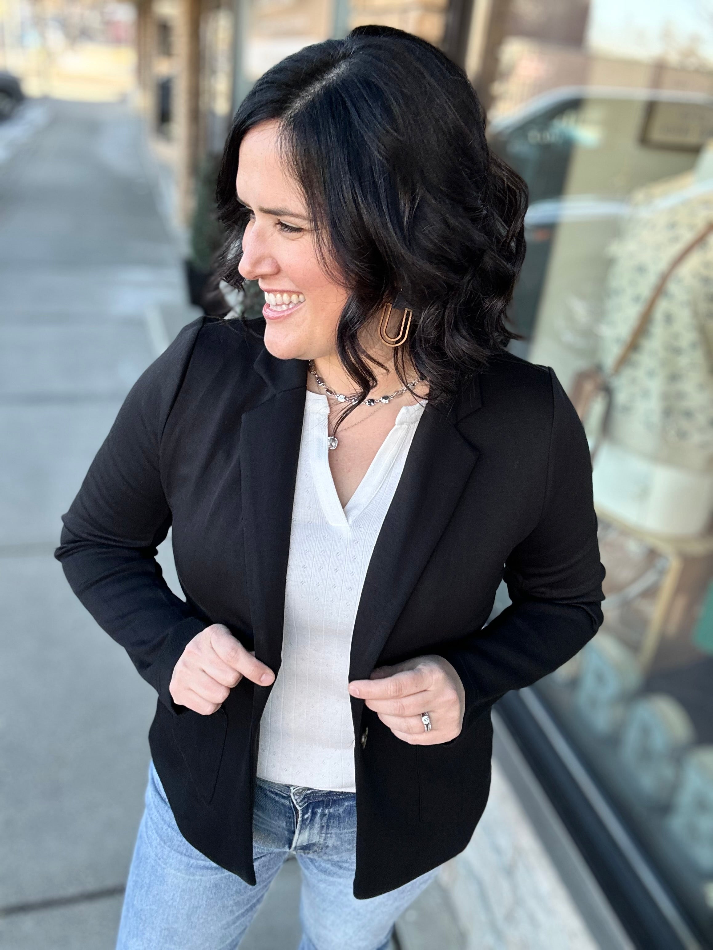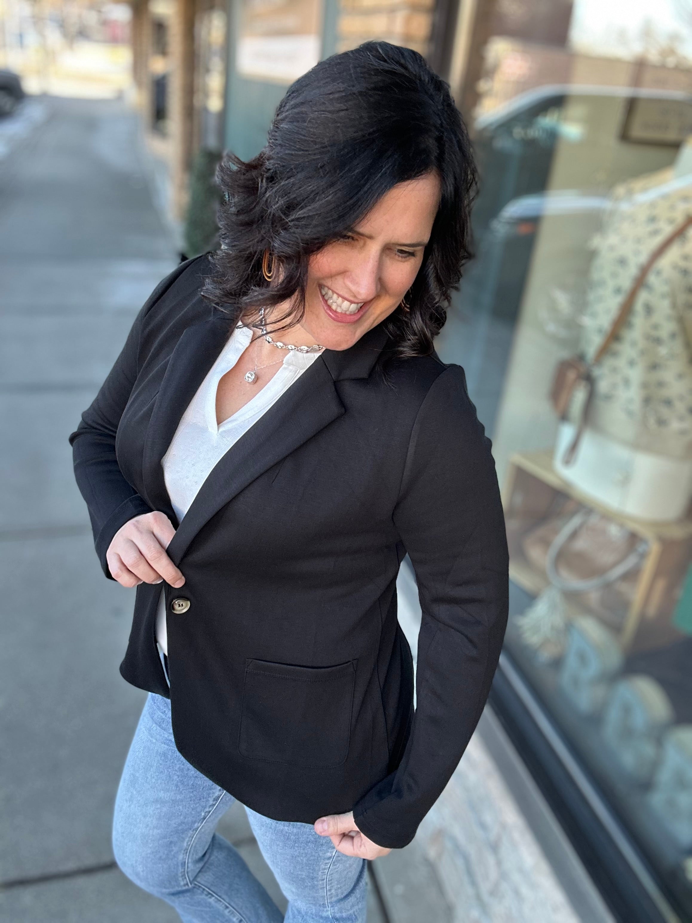 Perfect for workdays, meetings, travel, dinners, casual events, or running errands when you want to look pulled together without sacrificing comfort. This is truly a wear-anywhere blazer.