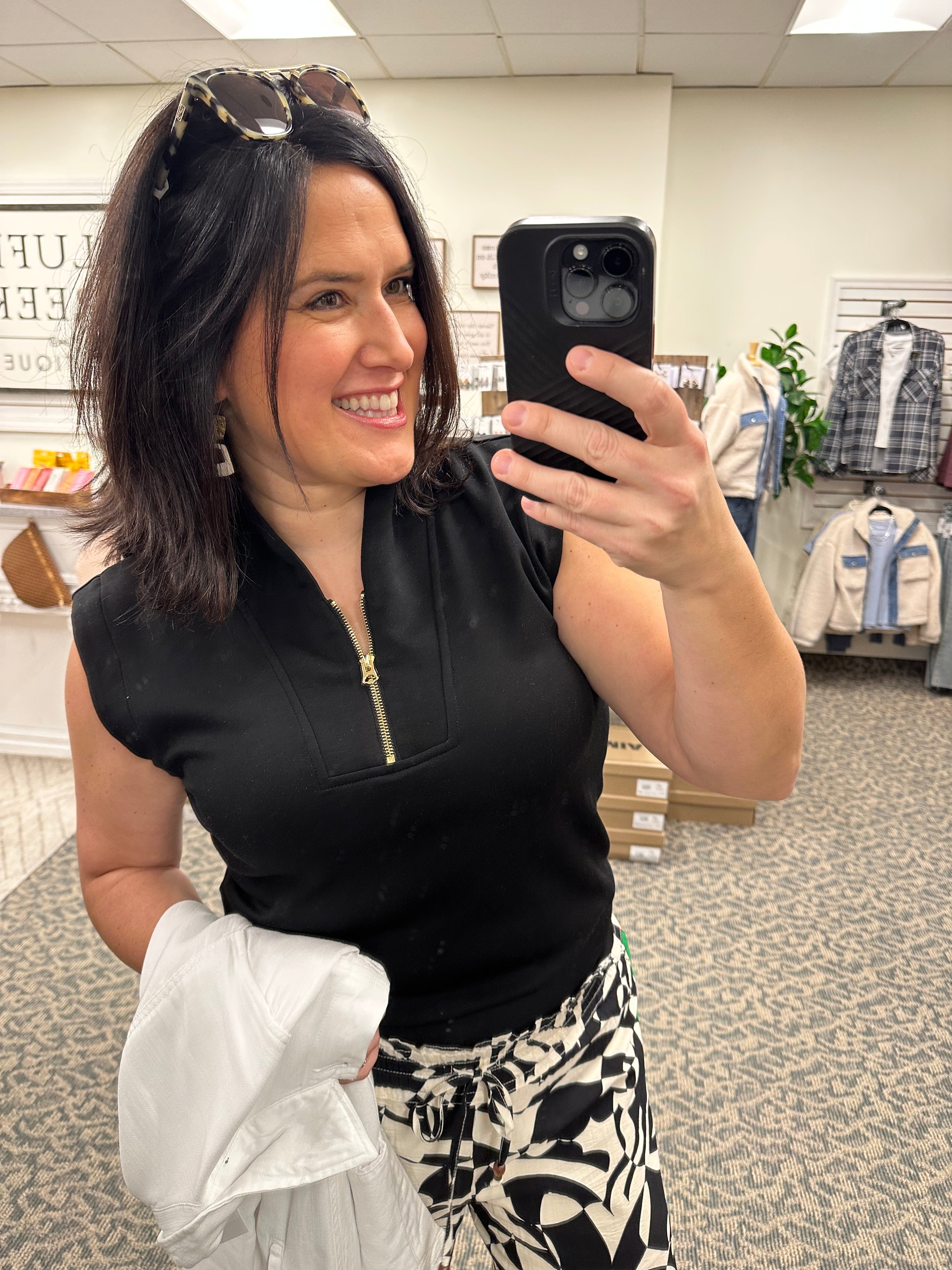✨ Polished enough for work, comfy enough for everyday — the Collared Half Zip Sleeveless Top is the definition of easy, elevated style.