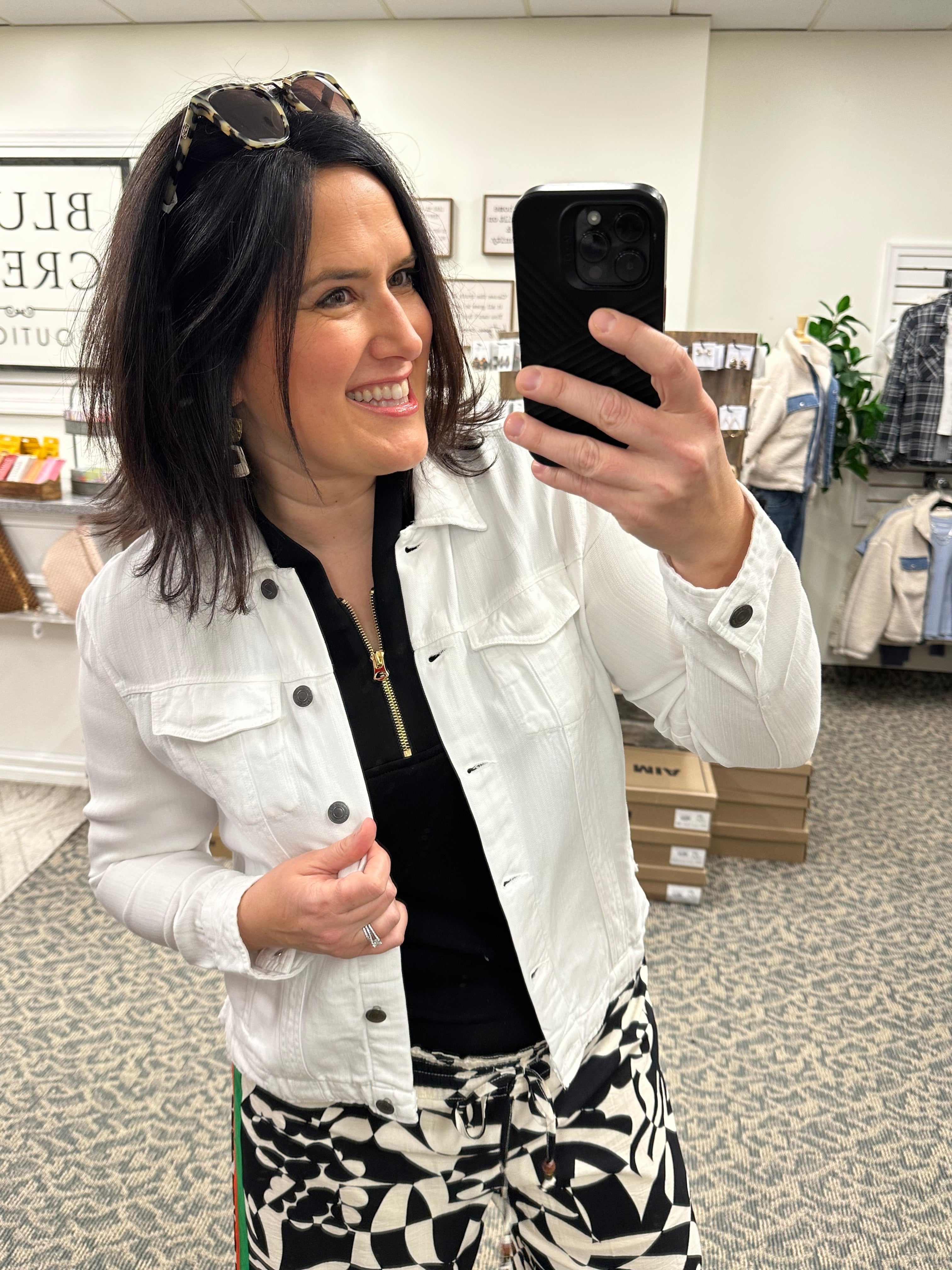 Layered look: Add a denim jacket, blazer, or cardigan when the temps drop.