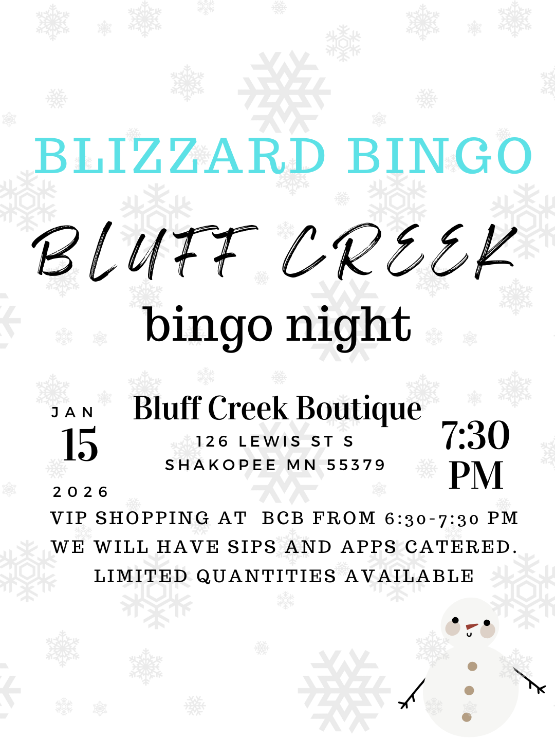 Blizzard Bingo at Bluff Creek ❄️