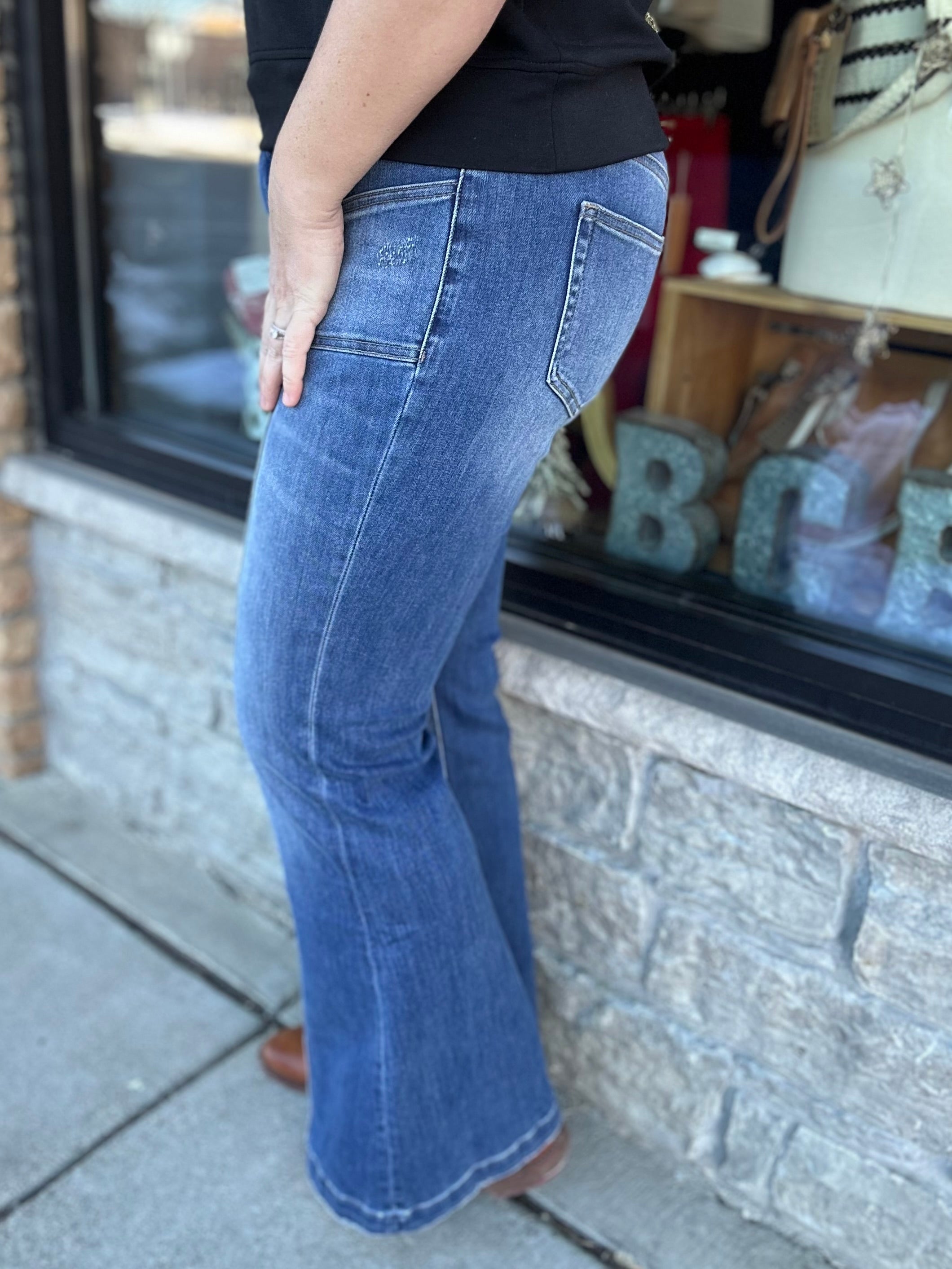 These are the jeans that make you stand a little taller, walk a little bolder, and feel completely put-together without even trying. The high-rise fit hugs in all the right places, while the dramatic flare leg gives you that leg-for-days silhouette we all love.