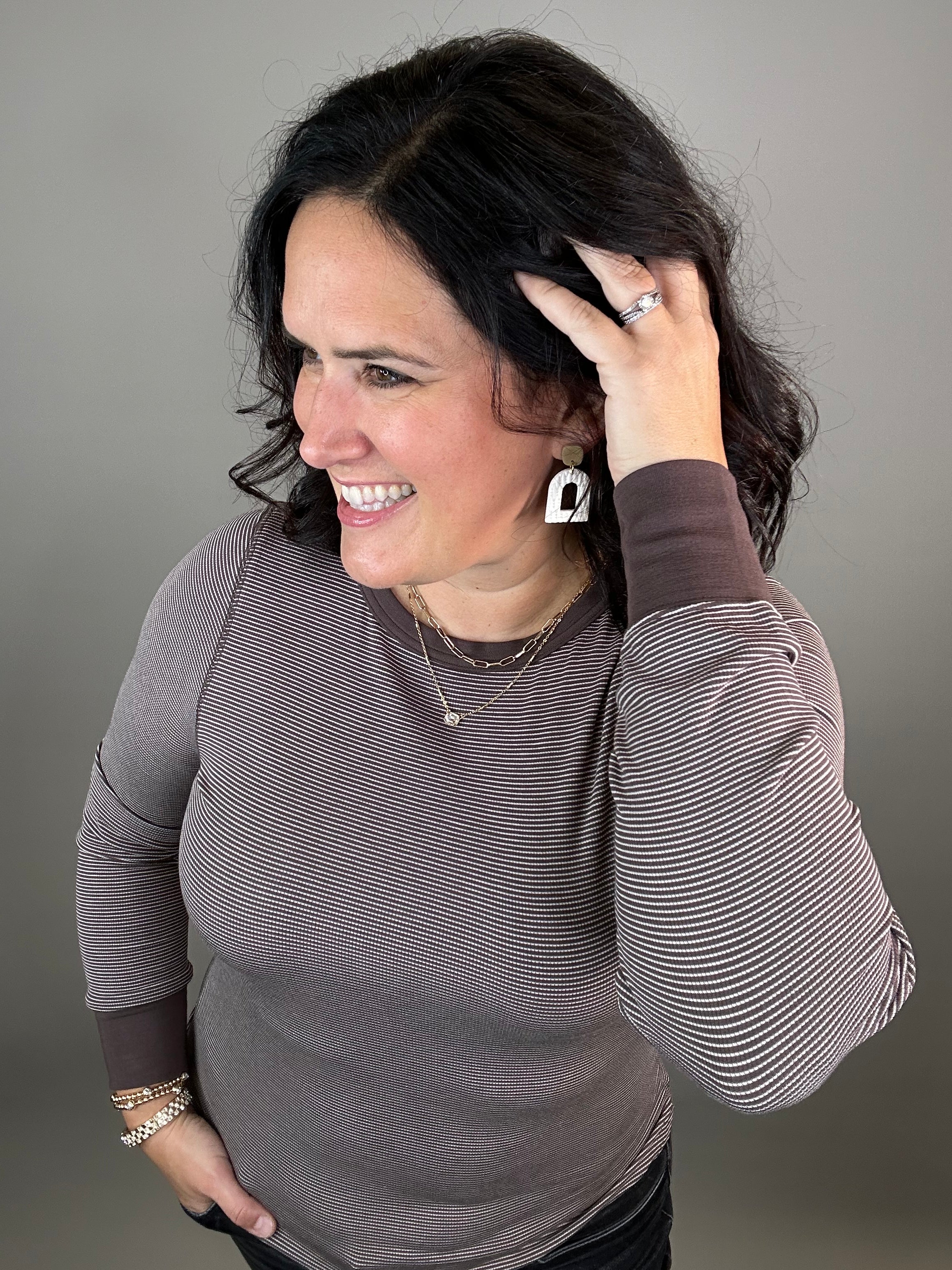 Coffee Ivory Stripe Stacy Top