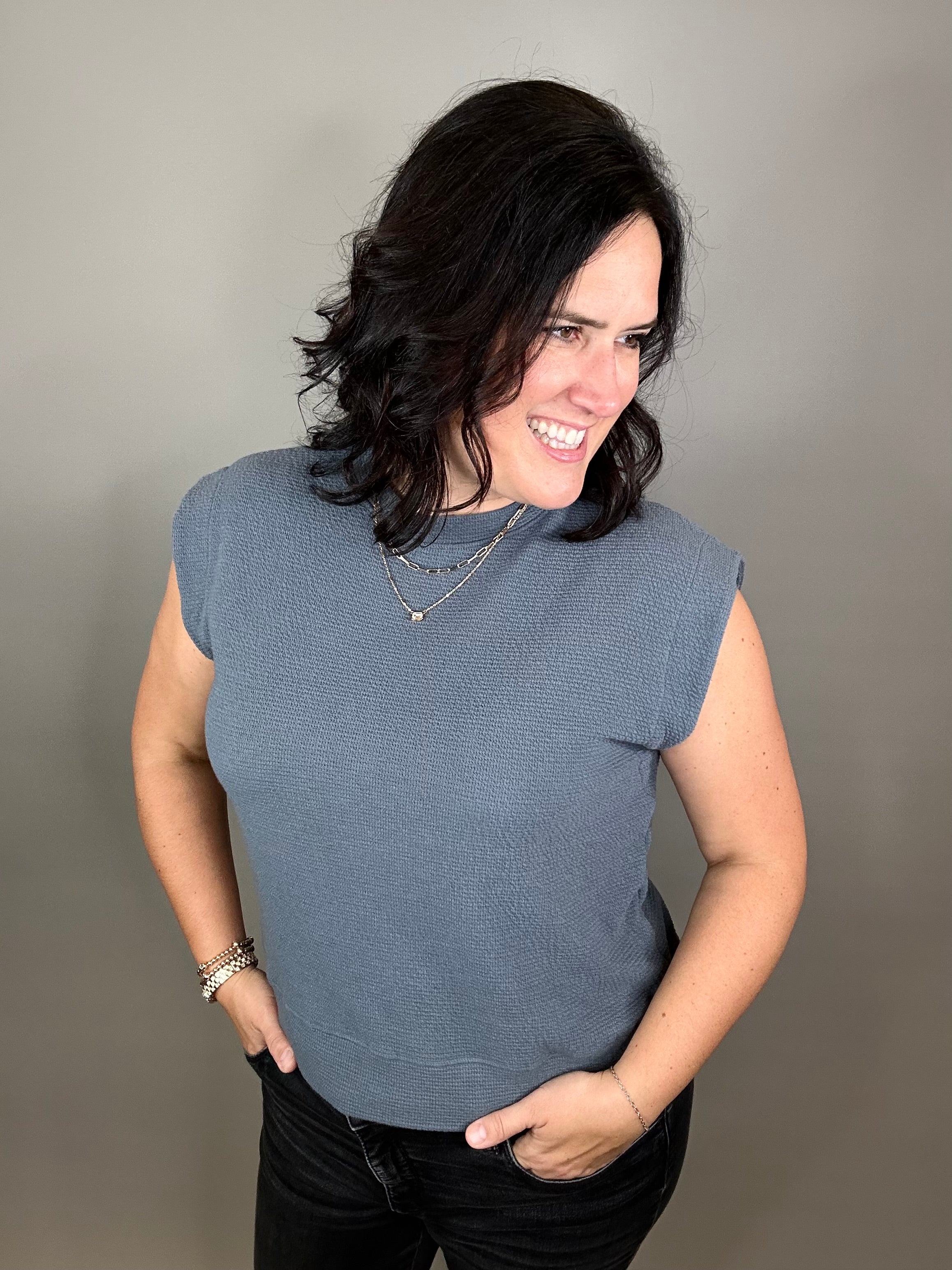 The Cloudy Knit Muscle Tee takes your everyday basic and elevates it with buttery-soft comfort and effortless style. Made from the same cozy cloud knit material as our best-selling tops, this sleeveless staple drapes beautifully and feels like a dream against your skin.