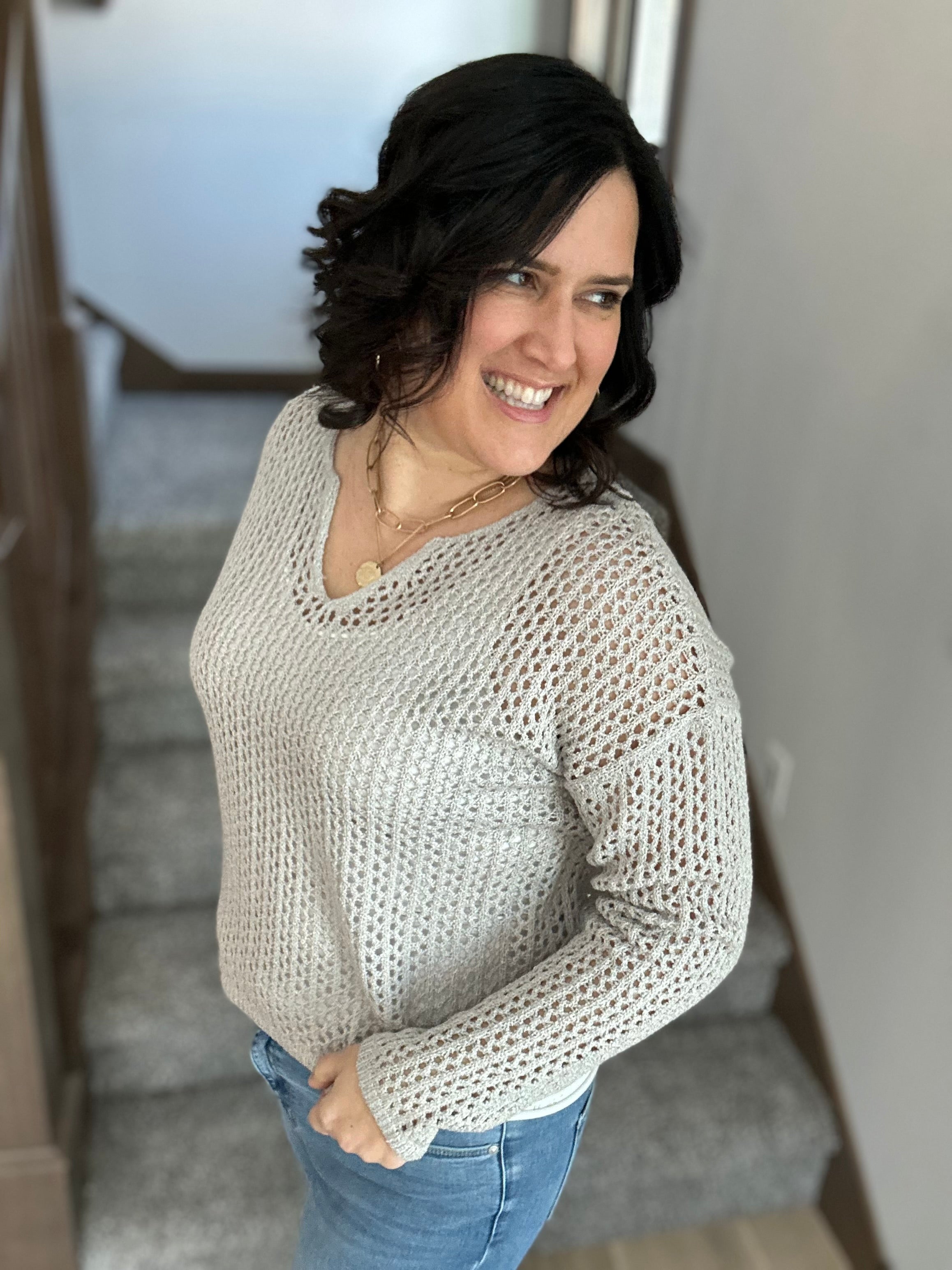 Easy, breezy, and effortlessly cool — the Split Neck Open Knit Sweater by Doe & Rae is that throw-on piece that instantly makes an outfit feel relaxed yet intentional. With its lightweight open knit and flattering split neckline, this sweater is perfect for layering season after season.