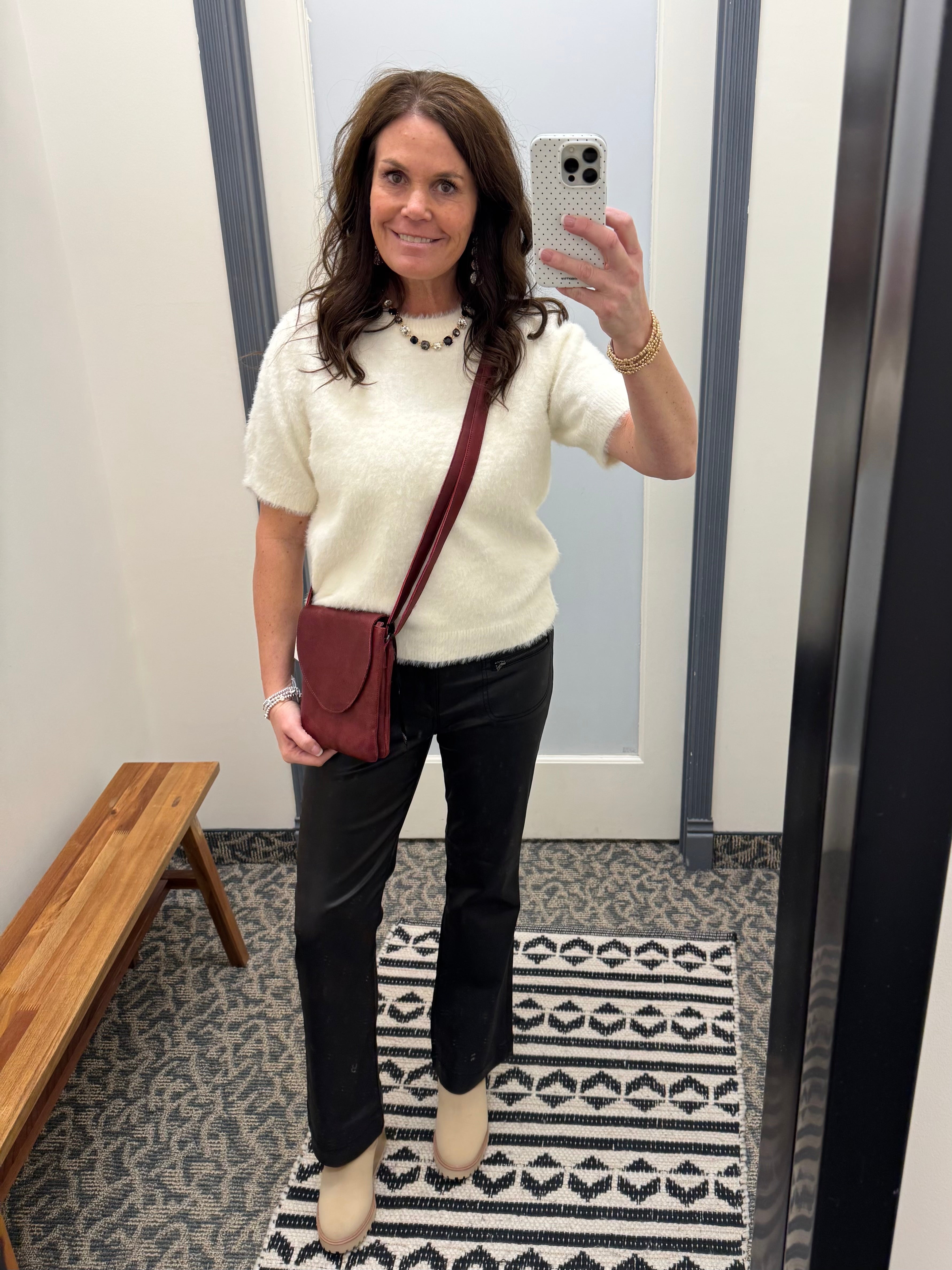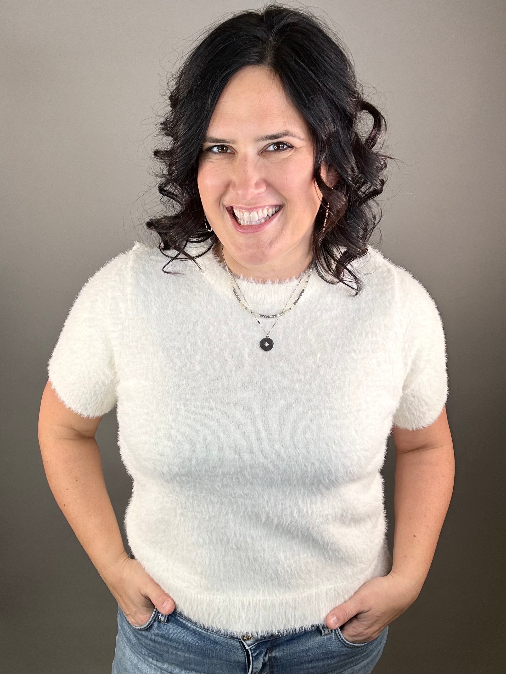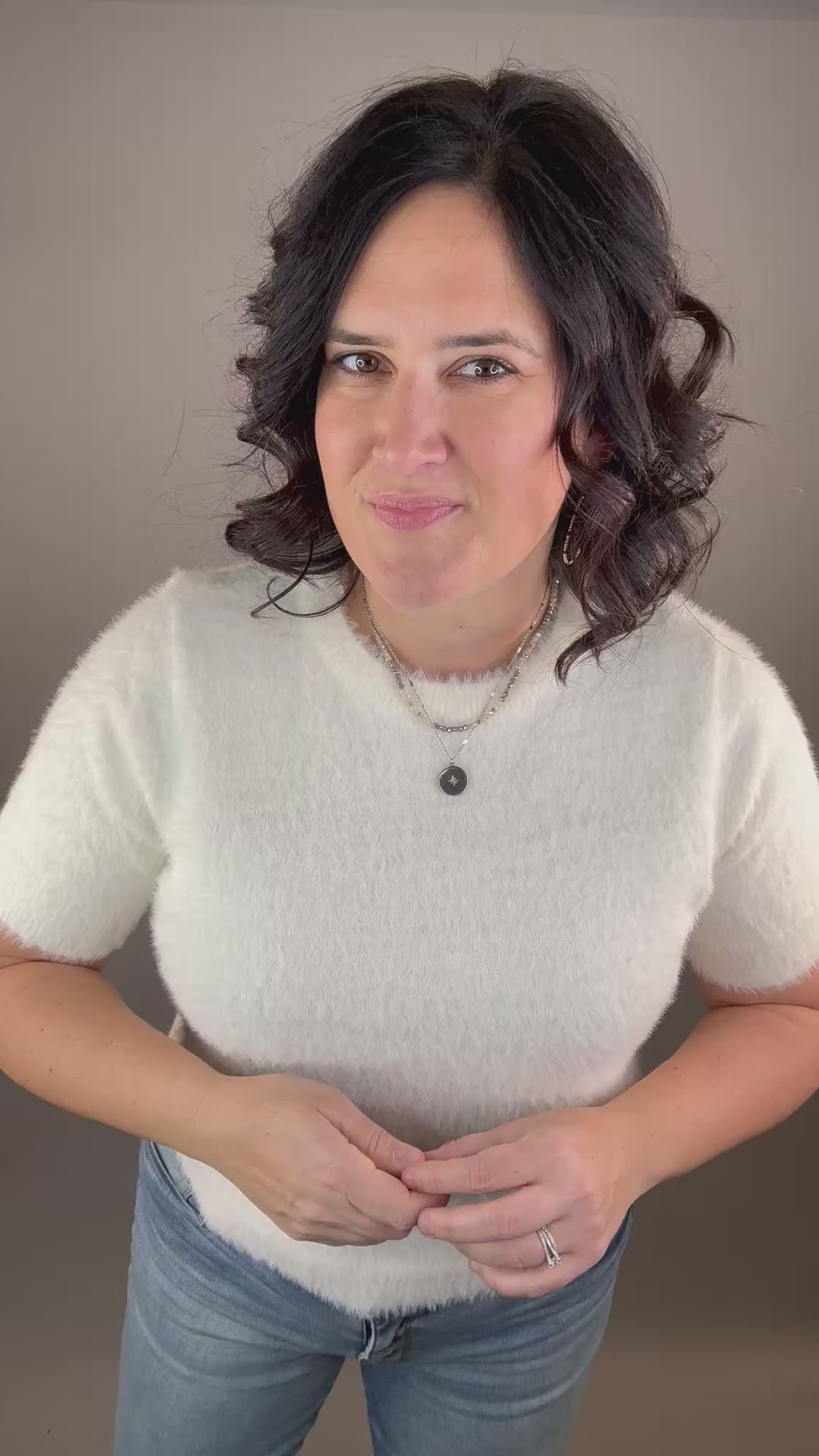 Soft, feminine, and effortlessly chic — the Ivory Fluffy Short Sleeve Sweater from Staccato is the ultimate cozy-meets-polished piece your wardrobe’s been missing. With its plush, fluffy texture and timeless crew neckline, this sweater brings a touch of luxe comfort to any outfit.