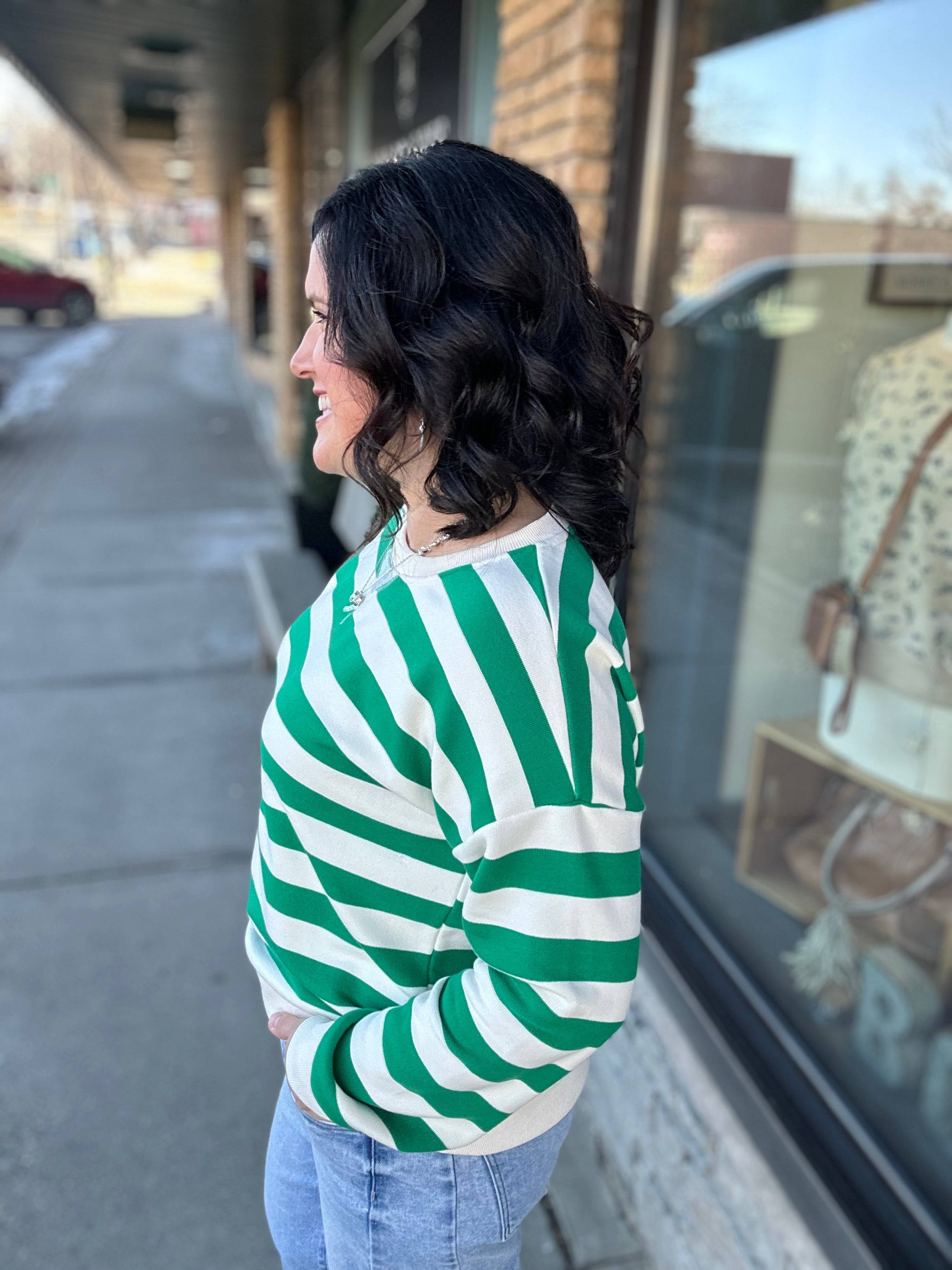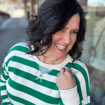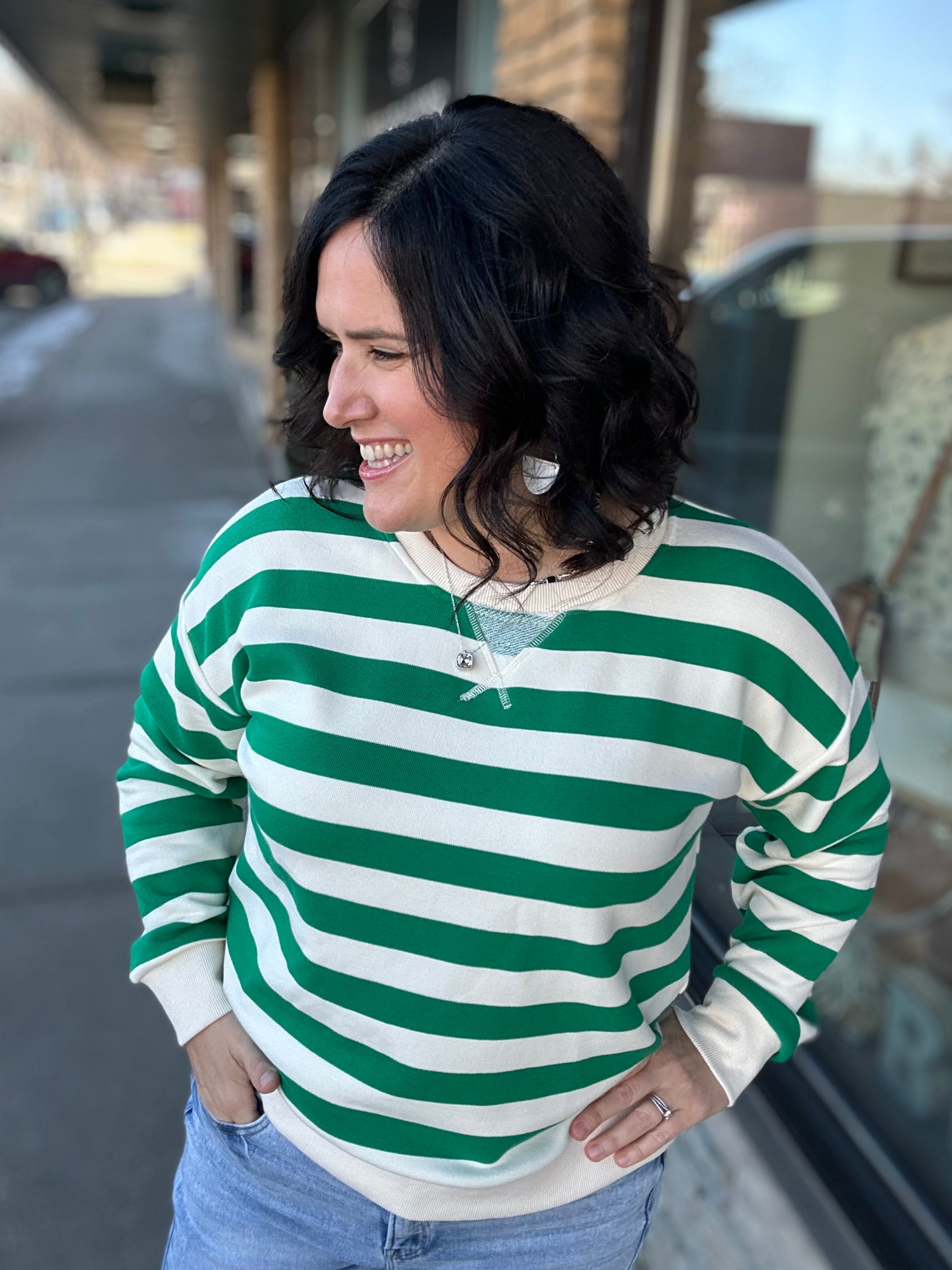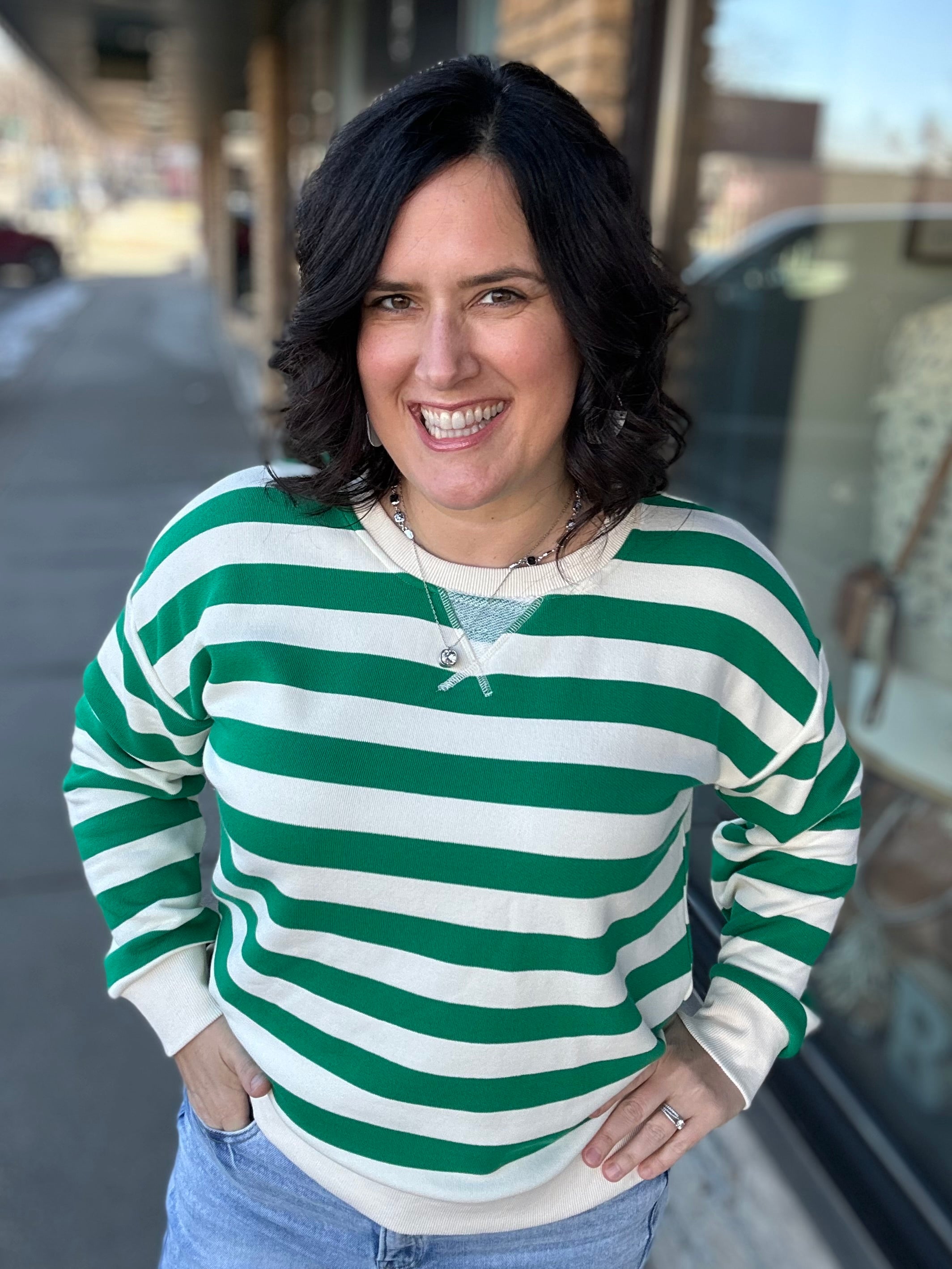 If you love cozy with a little personality, this one’s for you. Our Relaxed Fit Striped Pullover Sweatshirt brings the perfect pop of color with bold stripes and an accented trim line that makes it stand out while still feeling effortless. It’s soft, comfortable, and relaxed without feeling sloppy — the kind of sweatshirt that instantly pulls your outfit together.