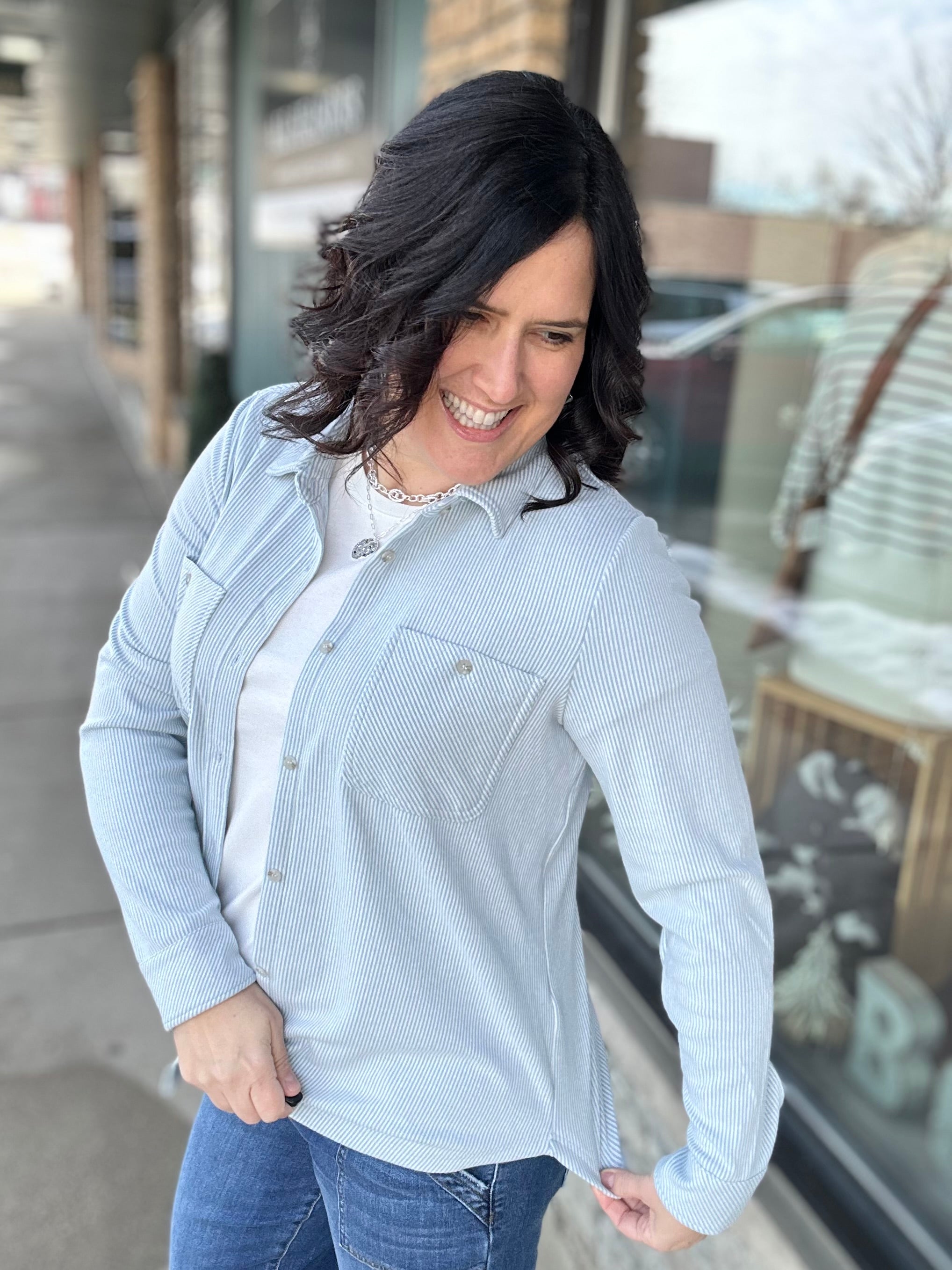 If you know, you know. Our customer-famous Lewis Top is the ultimate throw-on-and-go layer—and there’s a reason so many of you own it in multiple colors. This light pink version with crisp white pinstripes is fresh, flattering, and endlessly wearable.