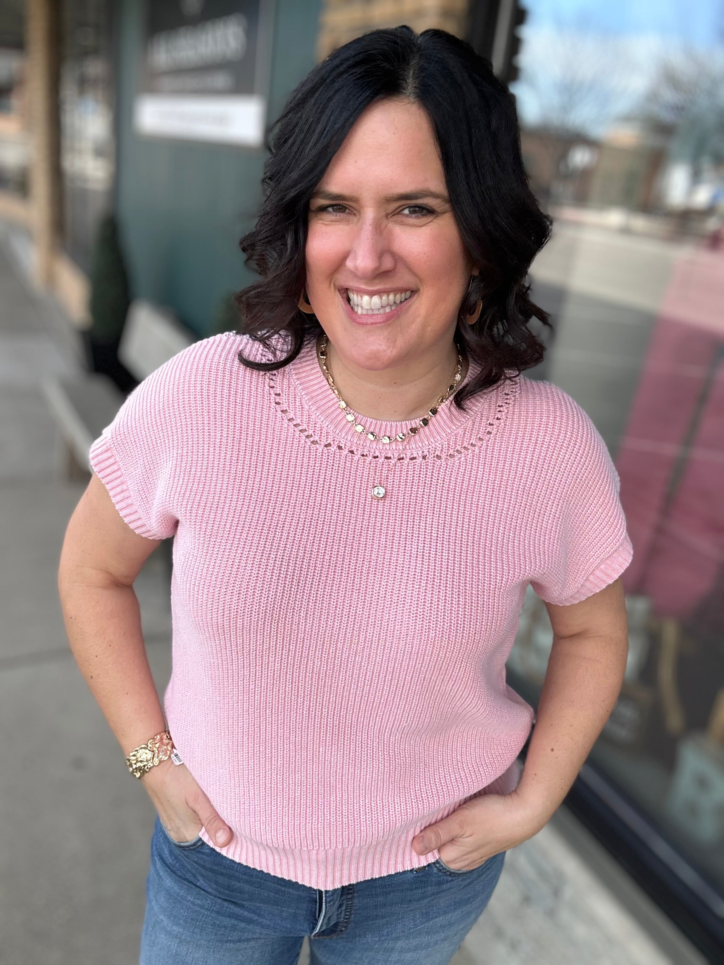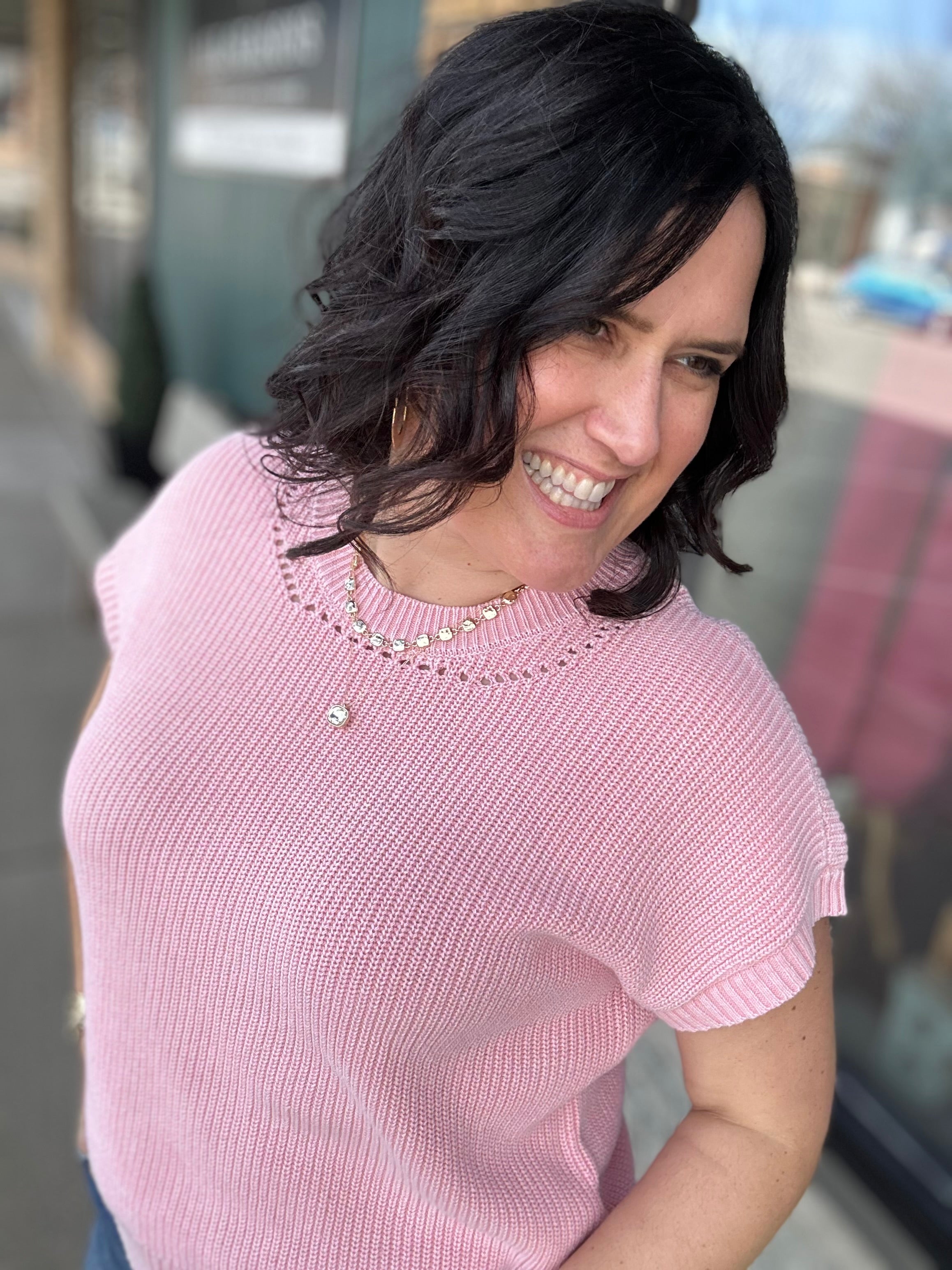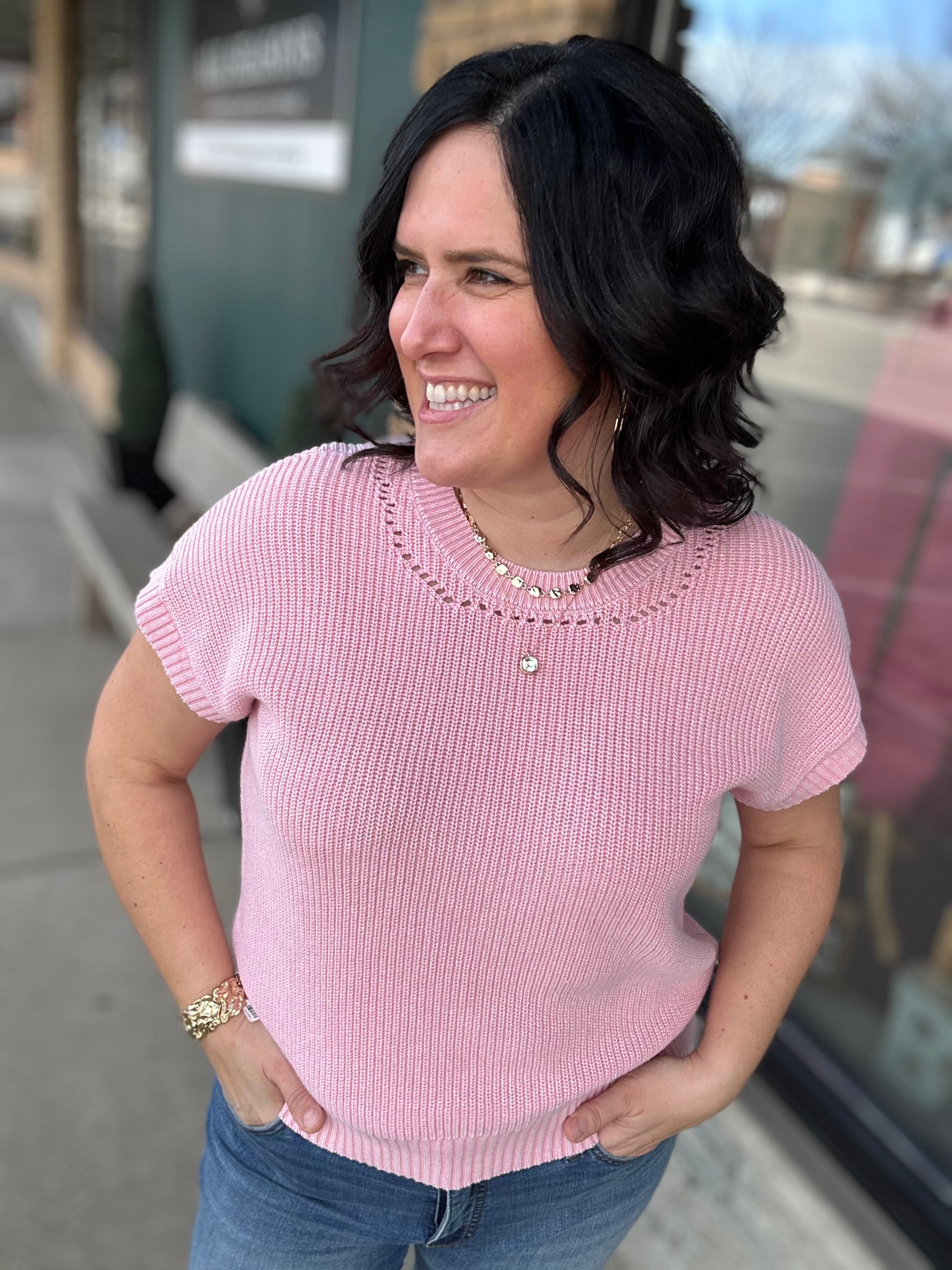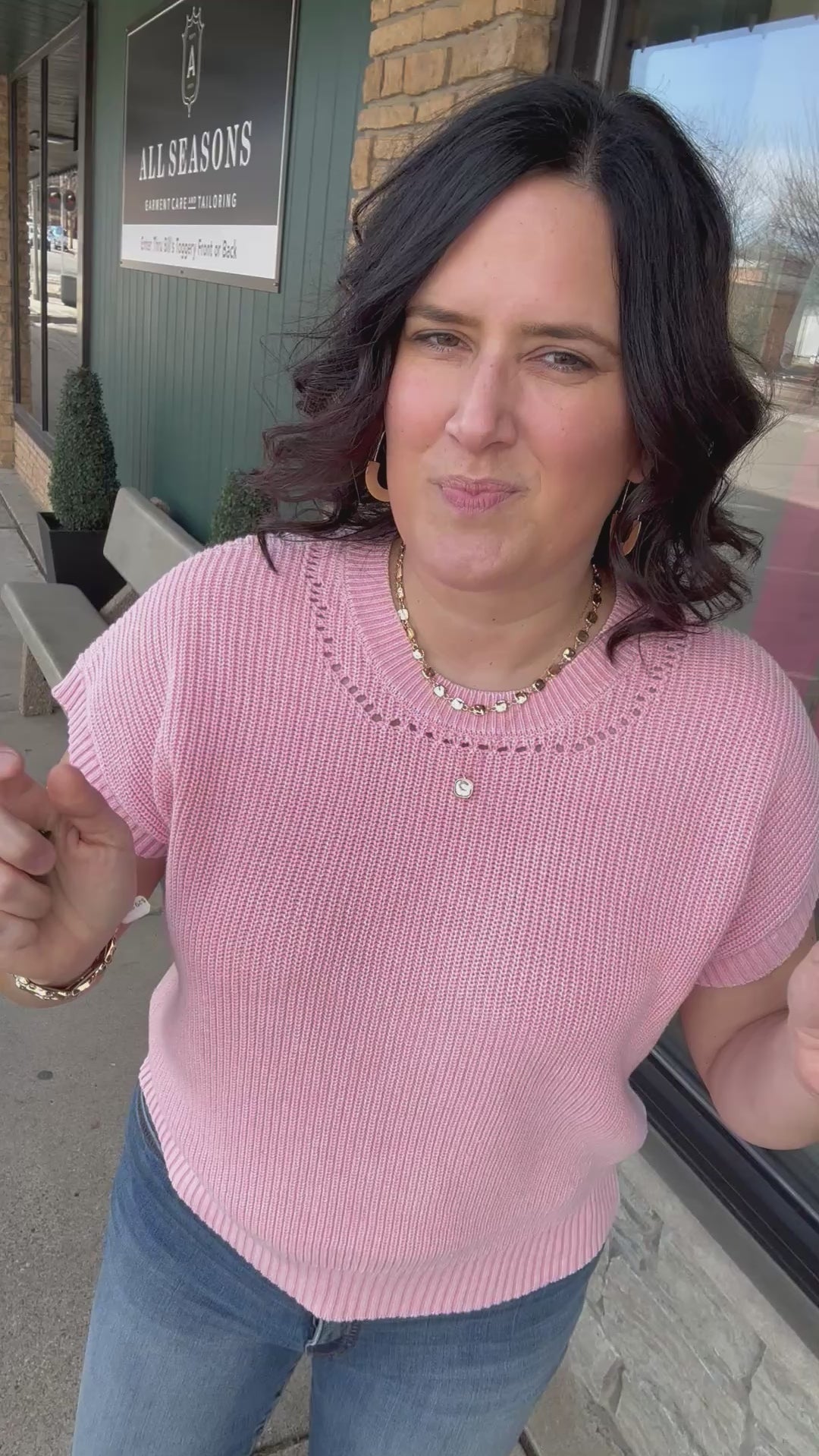 Add a fresh pop of color to your everyday wardrobe with the Pink Elwood Drop Needle Top from Flag & Anthem. This versatile knit top blends timeless style with effortless comfort, making it a piece you'll reach for again and again. Crafted from breathable 100% cotton, it features a classic crew neckline, short sleeves, and ribbed detailing along the collar, cuffs, and hem that give it a polished, structured finish. The soft knit texture keeps it light and comfortable while still looking elevated.