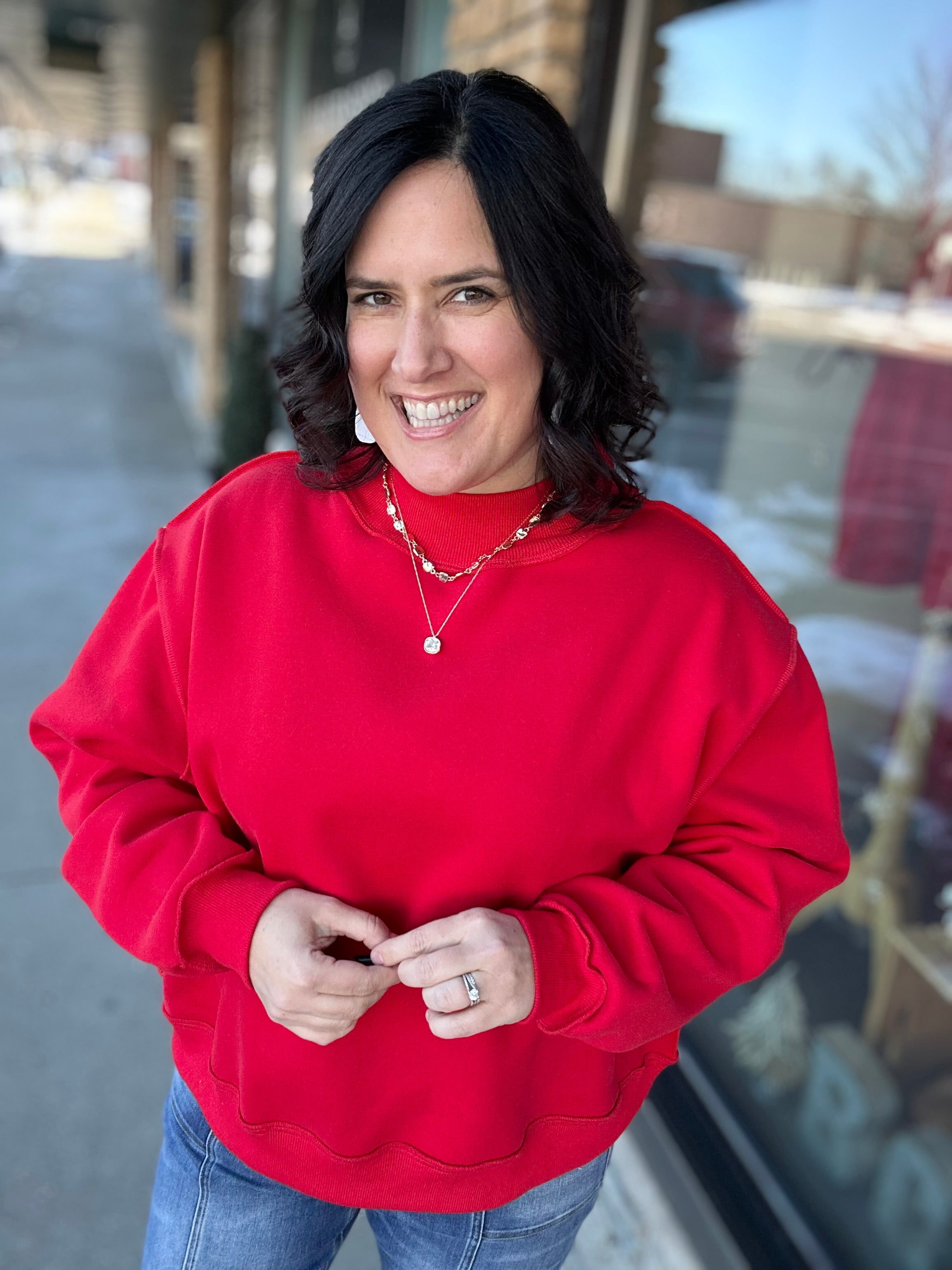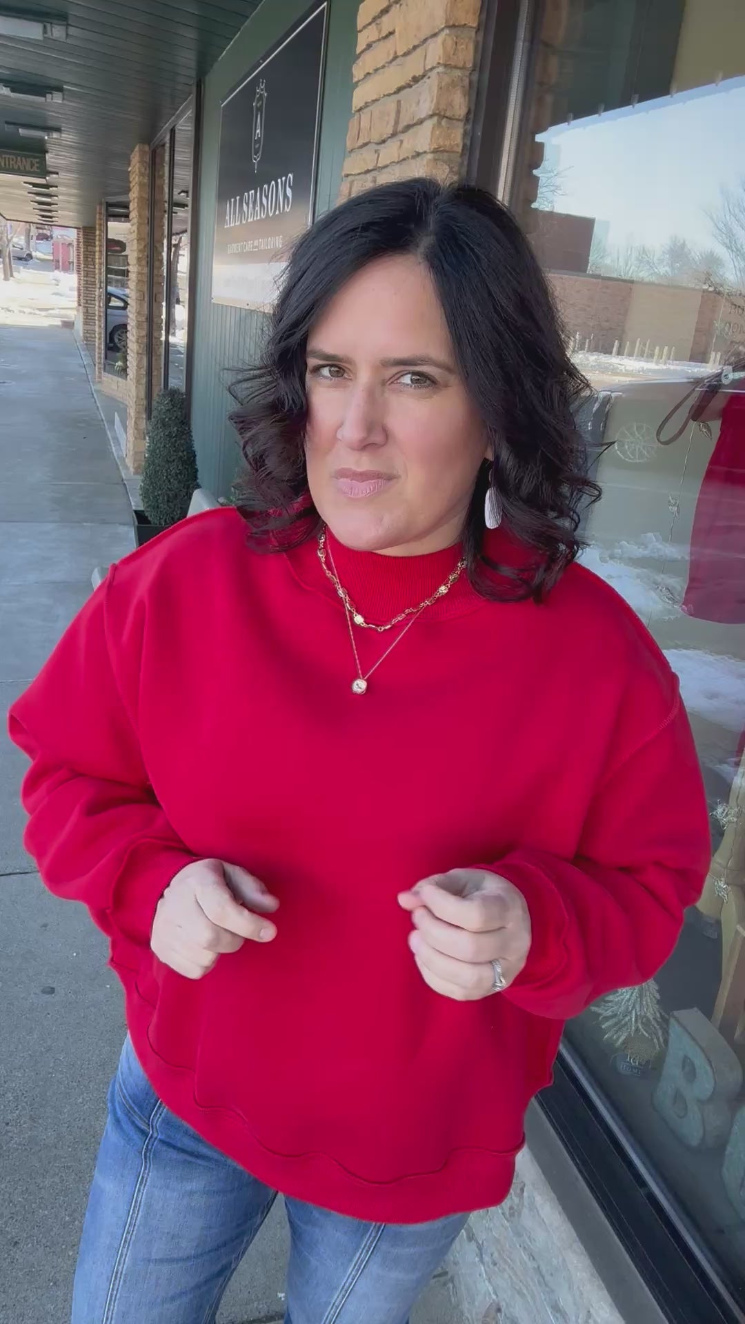 Okay… this is the cutest dang thing since sliced bread. Our Red Solid Reversible Mock Neck Sweatshirt is oversized, cozy, and completely on trend. It’s designed to be roomy and relaxed, giving you that effortless, cool-girl vibe without sacrificing comfort.