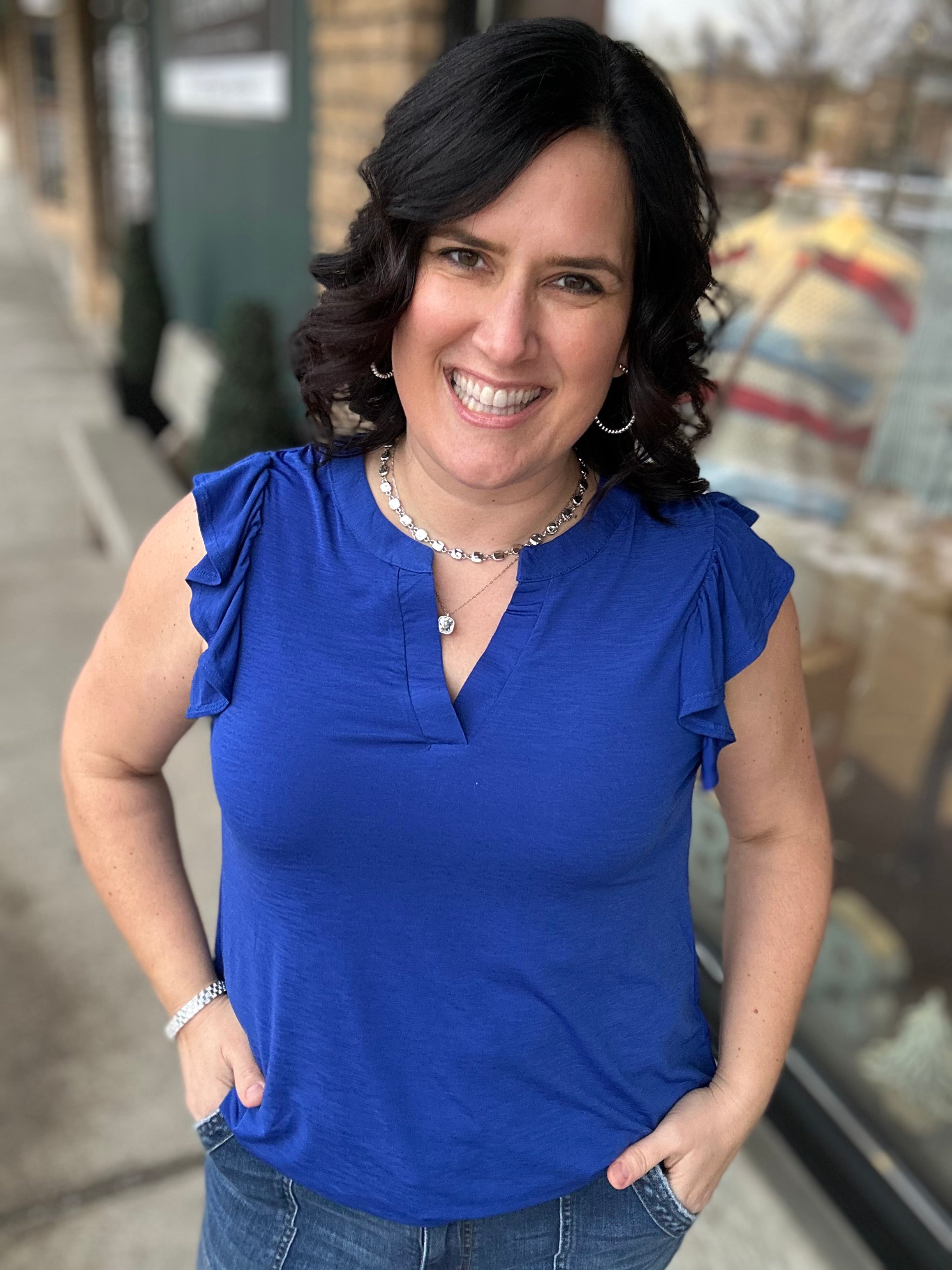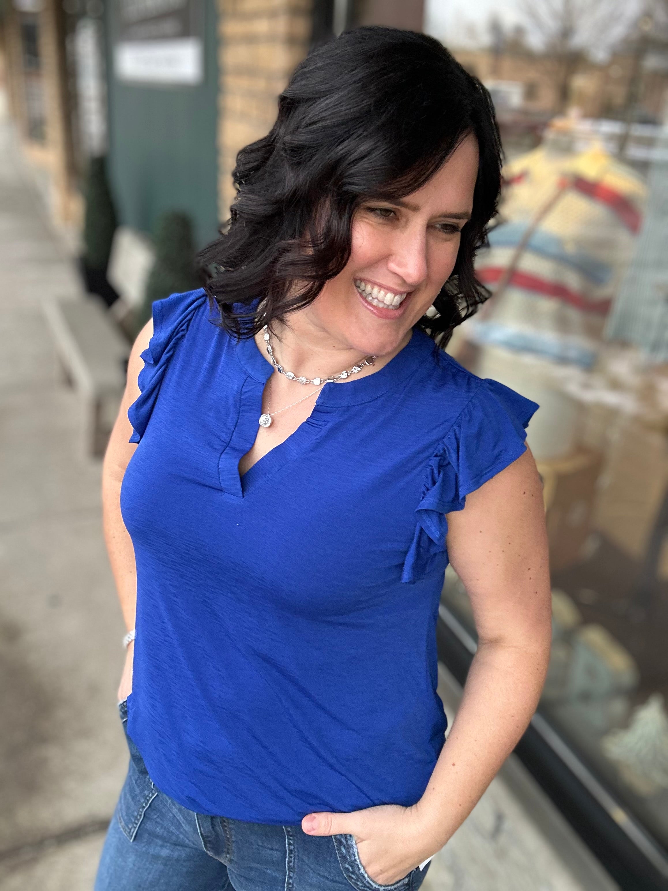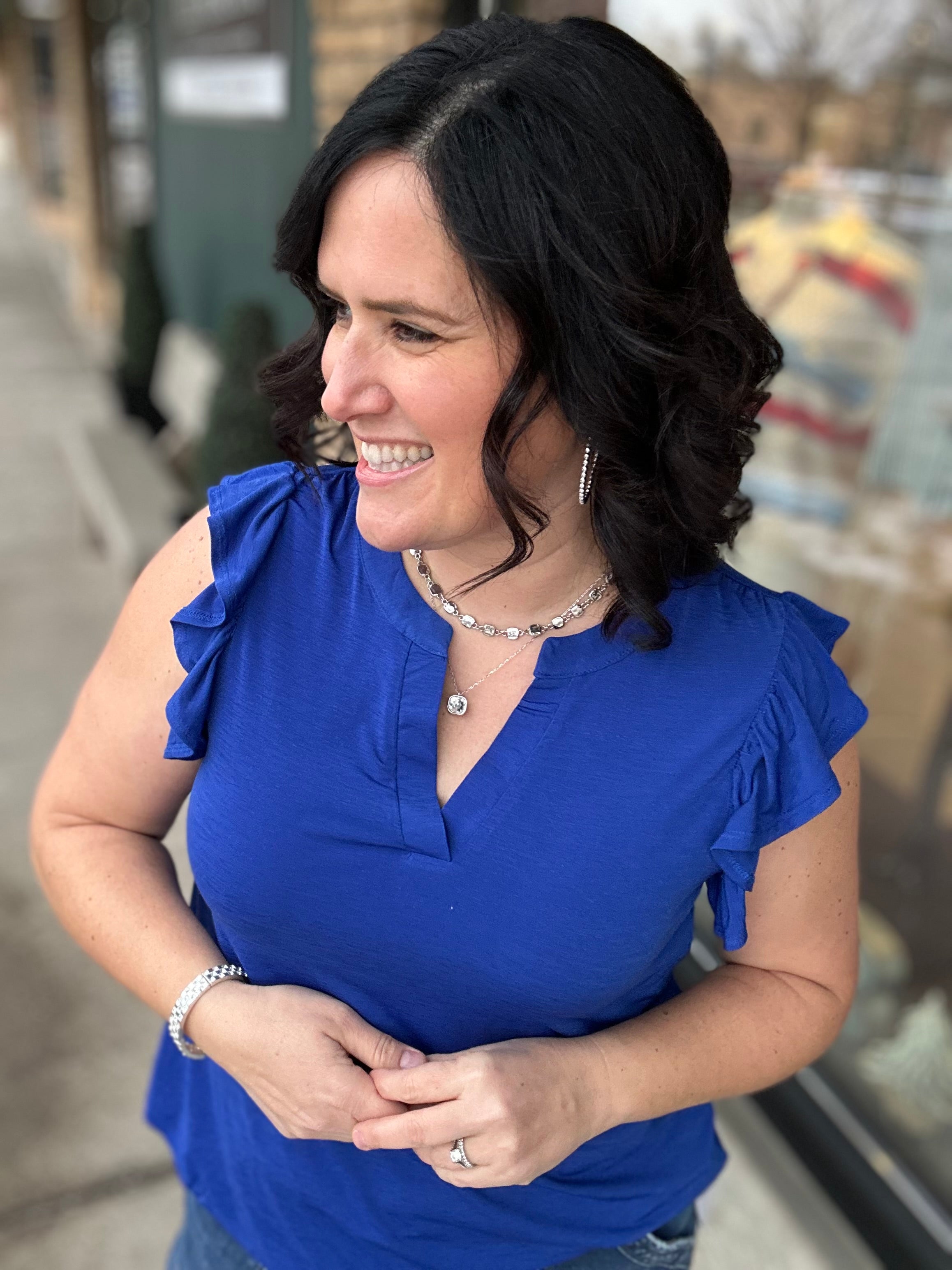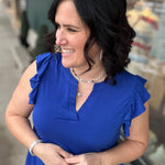 Royal Blue Flutter Sleeve Lizzy Top
