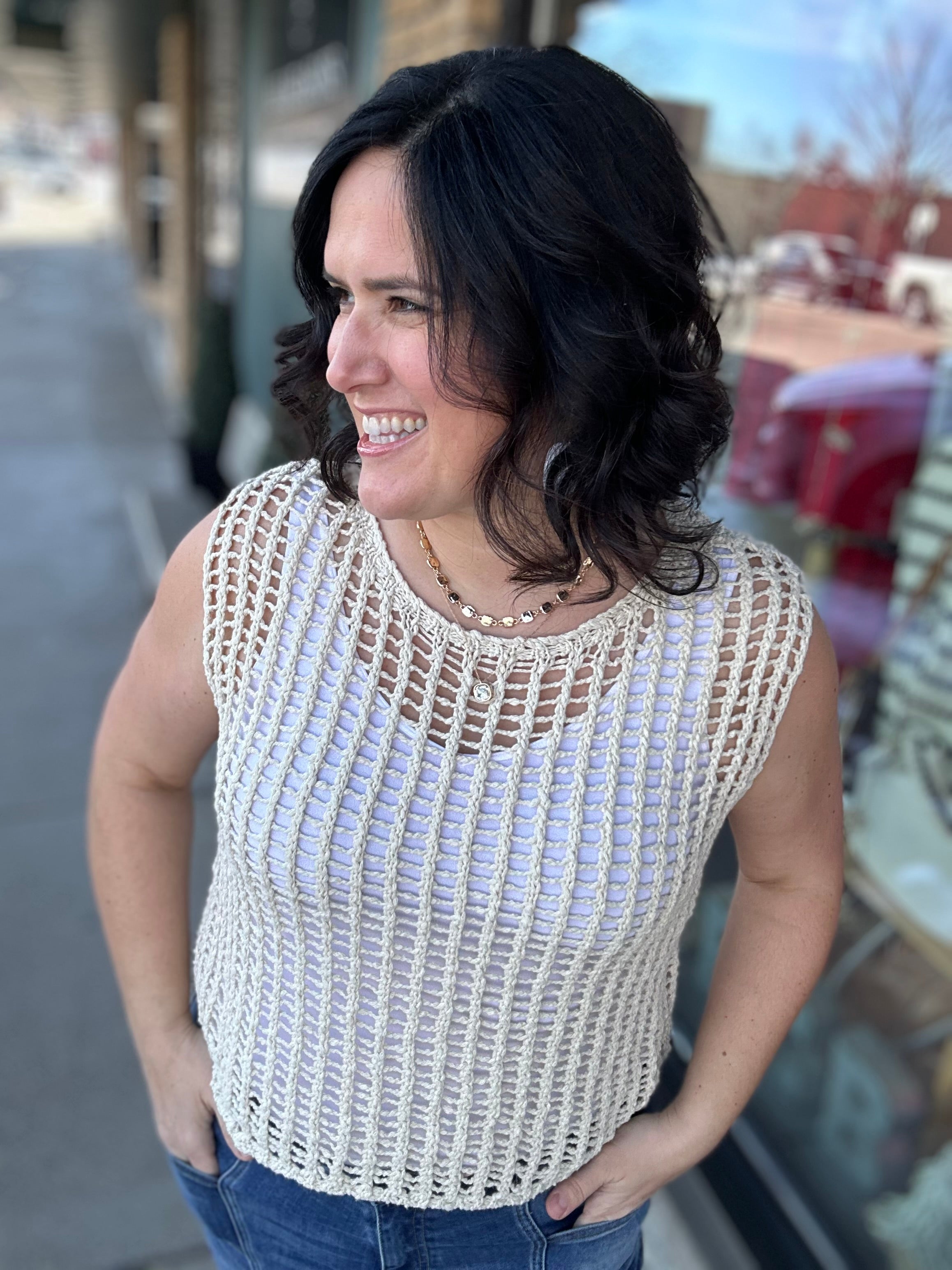 Sand Chunky Open Stitch Sweater Vest