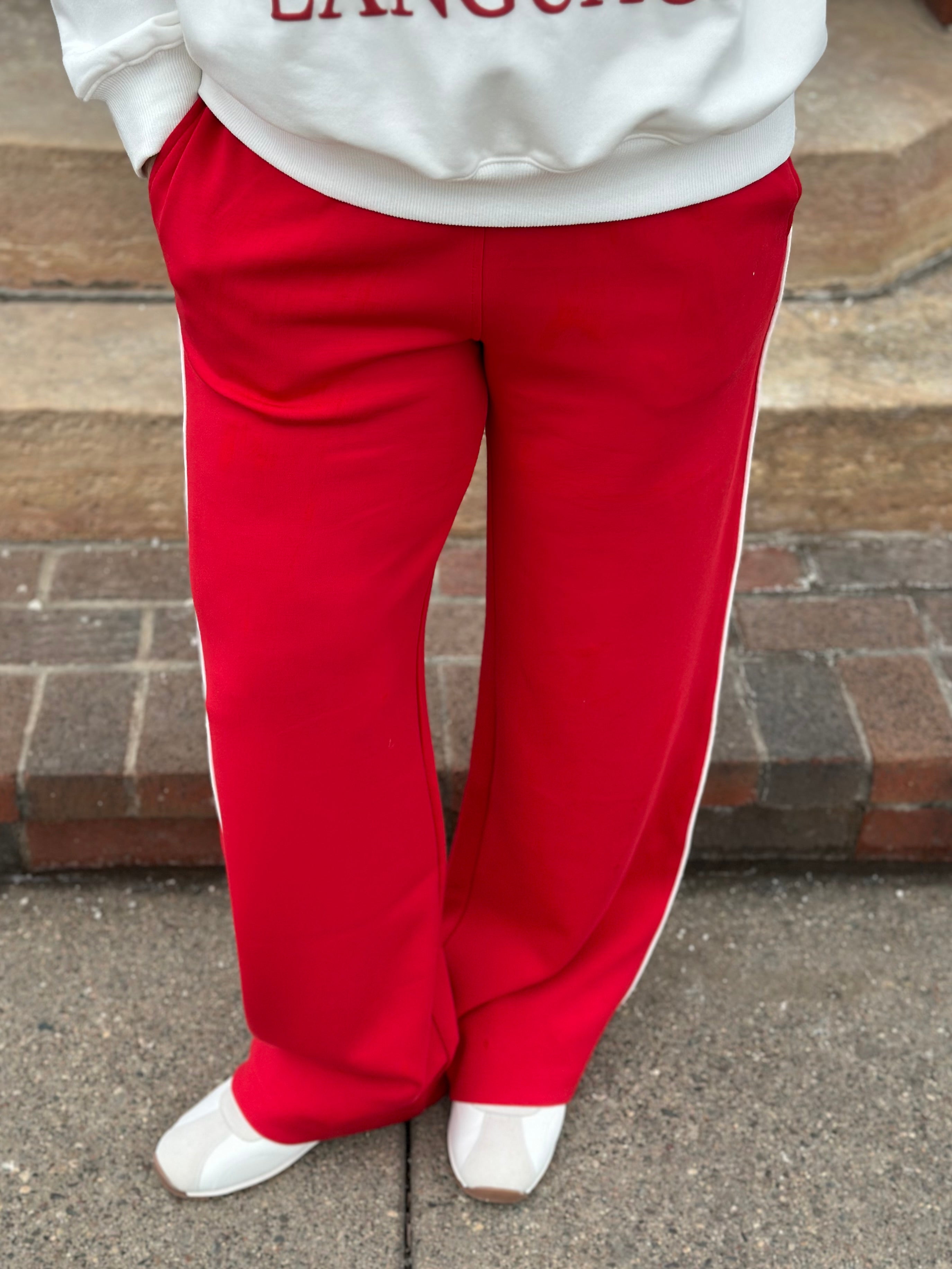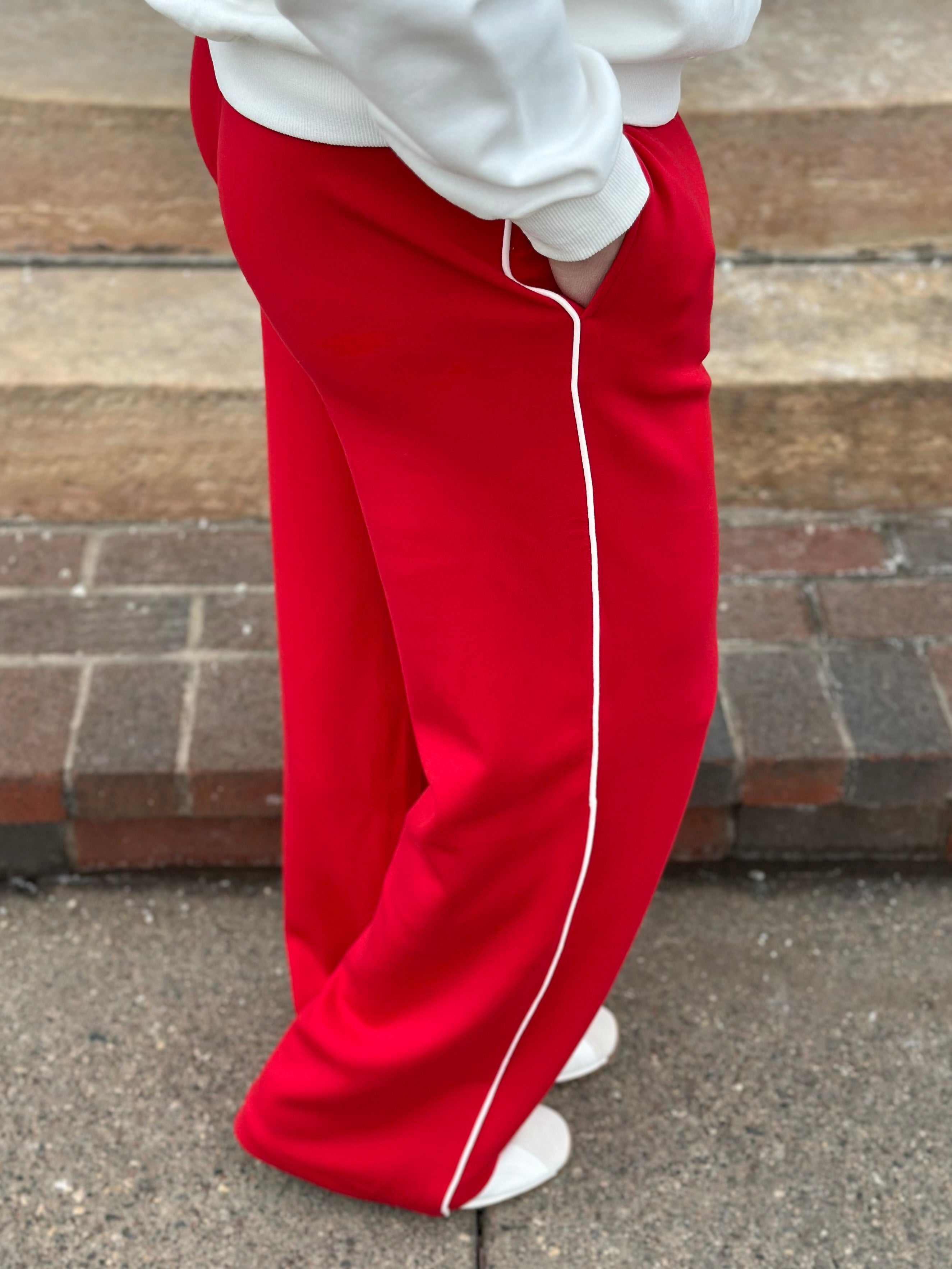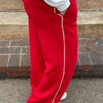 ✨ Comfy enough to lounge in, cute enough to wear out — the True Red/Cream Piping Pants are your new go-to for feel-good style.