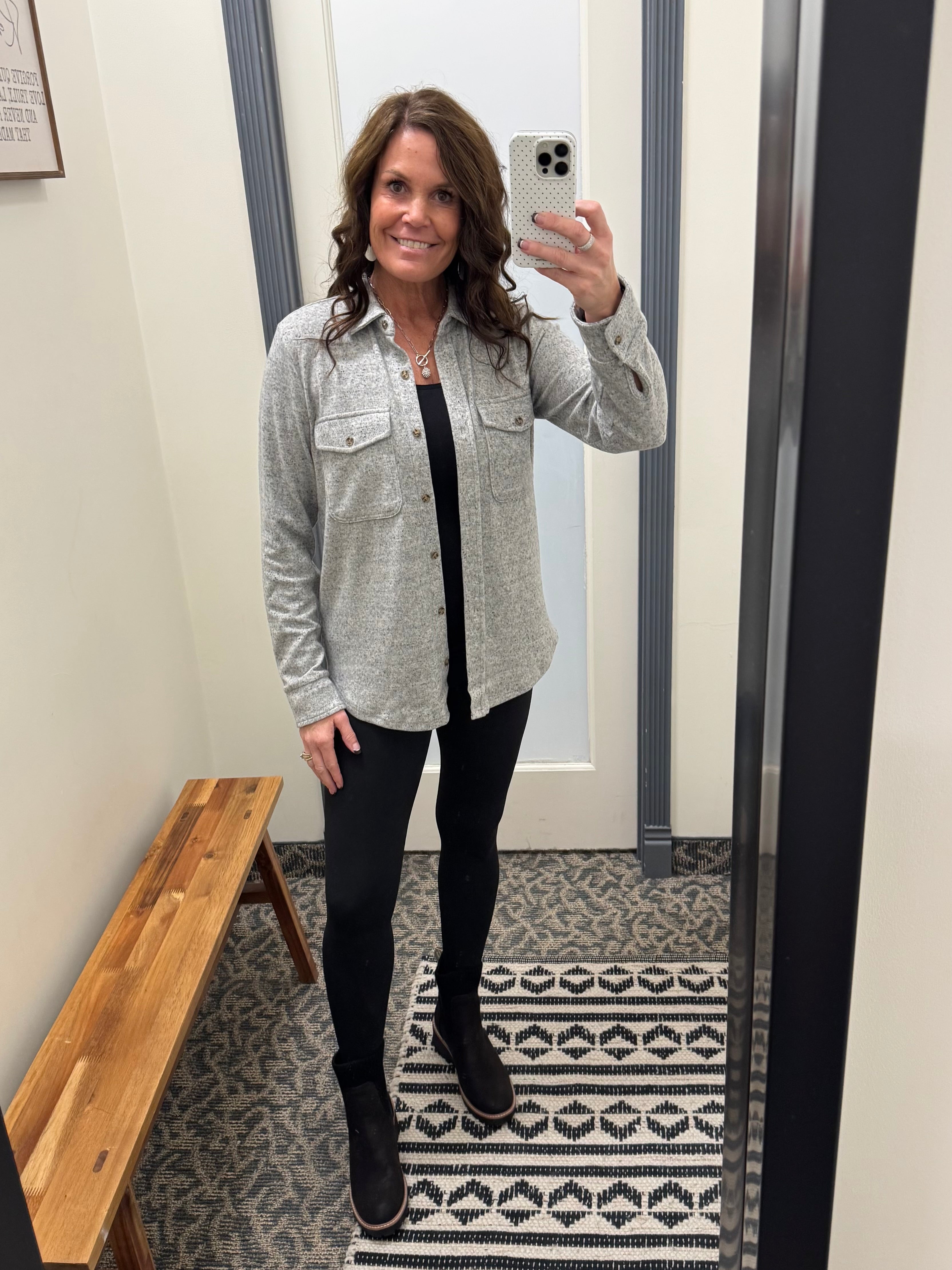 Slip it on and instantly feel effortlessly put-together yet relaxed. The soft, brushed feel gives all the comfort of your favorite lived-in flannel, while the tailored shape and western-inspired details make it feel elevated and fresh.